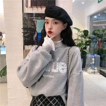 Sudaderas con capucha para mujer, cuello redondo con encaje, manga larga, temperamento dulce para mujeres, estudiantes, letras de estilo coreano, cómodas para mujer con estilo