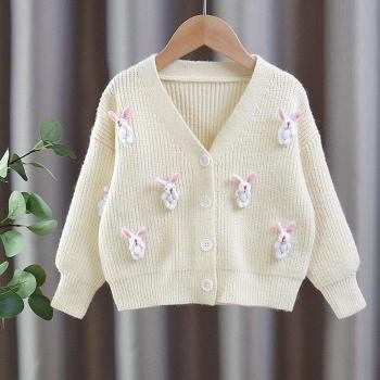Ropa de temporada: cárdigan tejido para niñas, modelo conejito