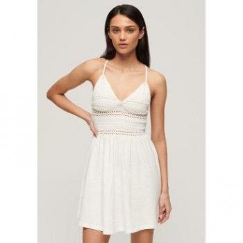 Superdry W8011735A Vestido Casual de Encaje y Punto Blanco - L