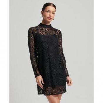 Vestido Largo Superdry de Manga Larga en Encaje Negro