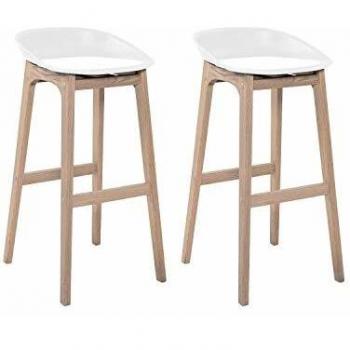 Conjunto de Taburetes de Bar Riva 65 cm – Madera y Acabado en Roble, Asientos Blancos de Plástico (Lote 2)