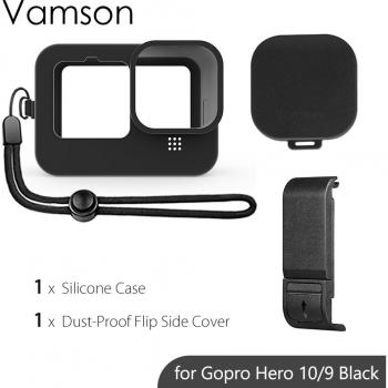 Vamson-cubierta lateral de batería para GoPro, accesorios para GoPro 10 9, con funda de silicona, tapa extraíble para puerta de batería, color negro