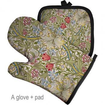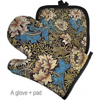 Guante de poliéster con patrón de plantas para horno, manoplas a prueba de calor para cocina, tapete para agarradera, guantes aislados con patrón Retro
