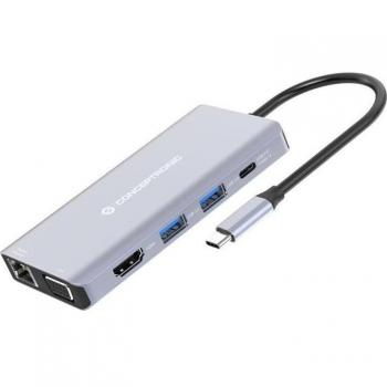 Conceptronic DONN20G base para portátil y replicador de puertos Alámbrico USB 3.2 Gen 1 (3.1 Gen 1) Type-C Gris