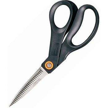 Tijeras de acero inoxidable con mango ergonómico que se adapta cómodamente a la mano derecha; su hoja afilada de 25 cm ofrece cortes limpios en papel, cartón y telas ligeras, perfecta para proyectos creativos y tareas diarias.