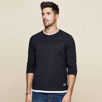 Top KUEGOU Otoño Azul Algodón 100% Hombre Manga Larga