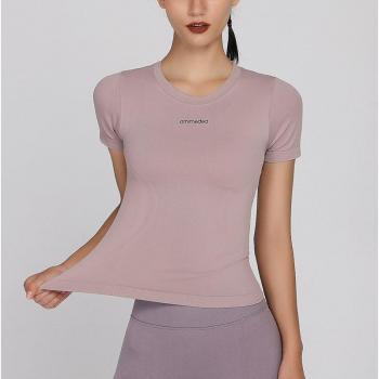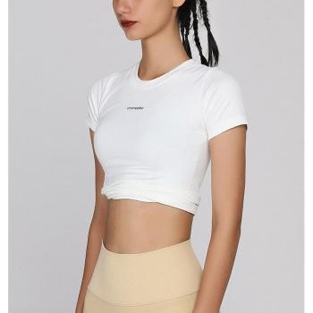 Camisetas deportivas con estampado de letras para mujer, Top de entrenamiento de Color sólido, Top de alta elasticidad para gimnasio, Yoga, correr, camisetas de manga corta transpirables
