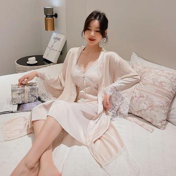 Acabado de encaje para mujeres 2 uds traje conjuntos novia rayón vestido Kimono vestido Sexy correa superior Albornoz camisón ropa interior de otoño falda