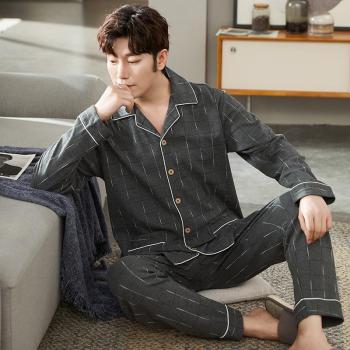 L-3XL de algodón para hombre, ropa de dormir holgada de 2 uds., traje de manga larga, pantalón, informal, para el hogar, con estampado de