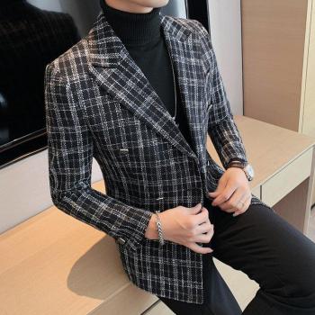 Abrigo de vestir de pata de gallo para hombre, chaqueta de negocios y ocio, 2022
