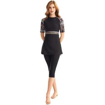 Traje de baño musulmán floral con protección UV y manga corta