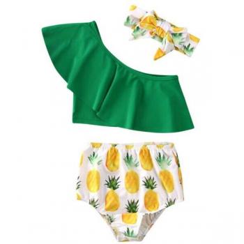 Traje de Playa Tricolor: 3 Piezas para Niños y Chicas con Cuello Sesgado