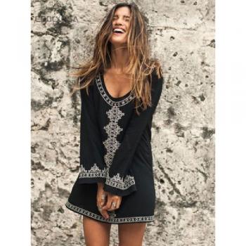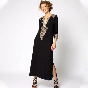 Kaftan de Playa Bordado para Mujer - Túnica de Traje de Baño #Q71