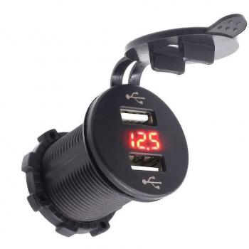 TurnRaise Cargador de Coche Impermeable 2 USB con Voltímetro LED Rojo