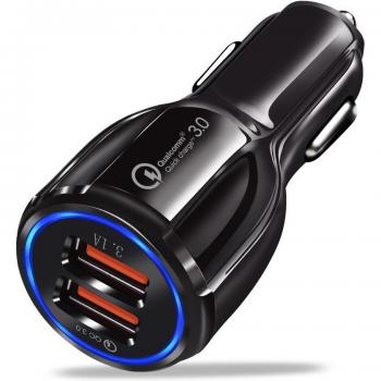Cargador de Carro 2 Puertos QC 3.0 – iPhone, Samsung, Huawei, Xiaomi