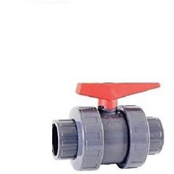 Válvula de bola de PVC-U con rosca D2 que controla el caudal en sistemas de agua potable o riego; su cuerpo sólido evita fugas, mientras los anillos tóricos garantizan un sello hermético y fácil montaje en tuberías de 2 pulgadas.