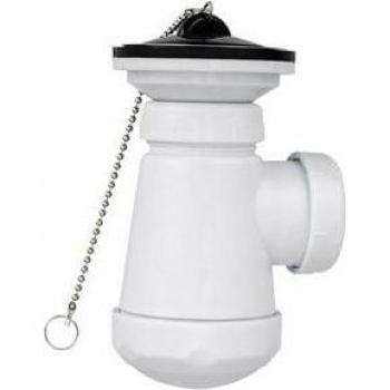 Sifón mini con válvula larga para tubería de 1 1/2 pulgadas, cuerpo en PVC resistente, sellado anti filtraciones y desagüe rápido. Compacto para instalación bajo lavadoras y lavabos, montaje sencillo y duradero.