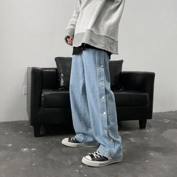 Doble botón en el lateral vaqueros ropa de calle de para hombre Casual pantalones de Hip Hop de pierna amplia Harajuku pantalones de carga