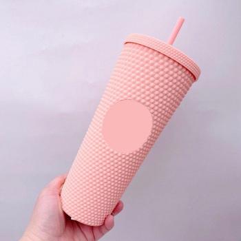 Taza de paja de diosa radiante con diamantes de , vaso frío para vacaciones de verano, vaso duriano de plástico de doble capa con tachuelas