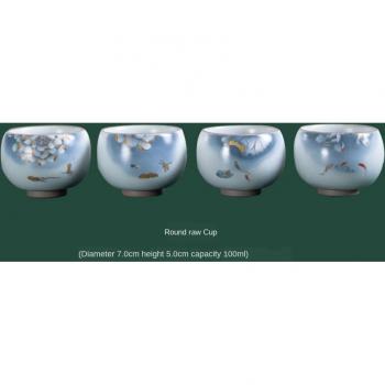 Juego de té de cerámica de alta gama, taza de té Kung Fu, taza de té Ru Ware, Ruyao taza de té, tazas pequeñas de cerámica, tazones de taza nupcial