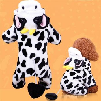 Imixlot, ropa para mascotas para otoño e invierno, traje cálido con capucha y forro polar de Coral blando para perro, vestido estampado de vaca para mascotas, ropa para festivales