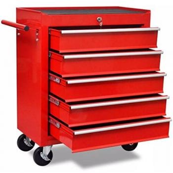 Carrito de herramientas de acero rojo con 5 cajones