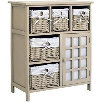 Mesa auxiliar de madera recuperada multicolor que combina estilo rústico y sostenibilidad; su diseño compacto incluye un cajón profundo y una puerta con bisel, ofreciendo espacio funcional y protección discreta para objetos personales.