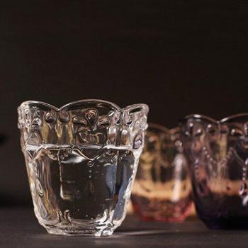 Copas redondas de vino de estilo Zakka con grabado Retro, Copas de leche para el desayuno, whisky Wiskey, color rosa y morado, corazón de vidrio