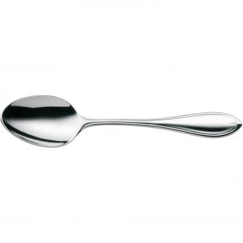 Juego de seis cucharas de moka WMF Corvo en acero inoxidable mate con protección Cromargan; mangos ergonómicos de 10,5 cm que facilitan la mezcla y sirven café espresso o bebidas frías con un toque moderno y resistente a arañazos.
