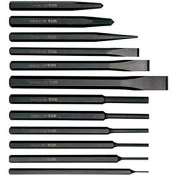Set compacto de seis cinceles y punzones de acero inoxidable con empuñaduras antideslizantes, ideal para trabajos de carpintería fina, metalurgia ligera y tallado preciso; cada pieza ofrece filo afilado y resistencia a la corrosión.