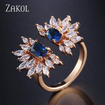 ZAKOL-anillo de compromiso de circonia cúbica AAA para mujer, joyería de lujo para boda, tamaño ajustable, RP5033