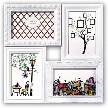 Marco de fotos Zep Airolo 7 en madera gris, con vidrio normal y forma rectangular. Su apertura permite colocar hasta 13 × 13 cm, ideal para exhibir varias imágenes a la vez. Se monta en pared sin complicaciones.