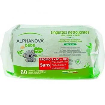 Alphanova Lingettes bébé huile d'olive 3x60 unités