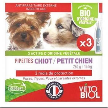 Vétobiol Pipettes Chiot Petit Chien 250 g à 15 kg Bio 3 Pipettes