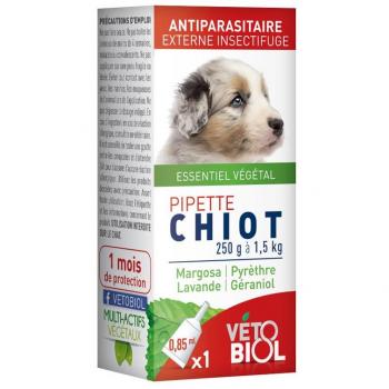 Vétobiol Pipette Antiparasitaire pour Chiot et Petit Chien 250g / 15 kg Bio - 1 Pip