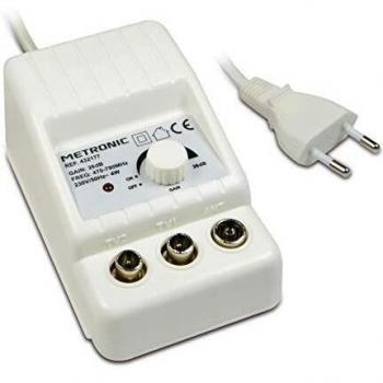 Amplificateur de télévision Televes avec 2 sorties, compatible avec fréquences 47-790 MHz et amplification réglable 10/20 dB, modèle 560542