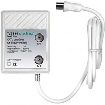 Axing TVS 8-04 Amplificateur de signal avec 2 sorties (2 x 26 dB) pour TNT, FM ou TV câble