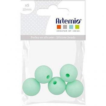 Perles rondes en silicone Artemio 5, couleur vert d'eau - 10mm