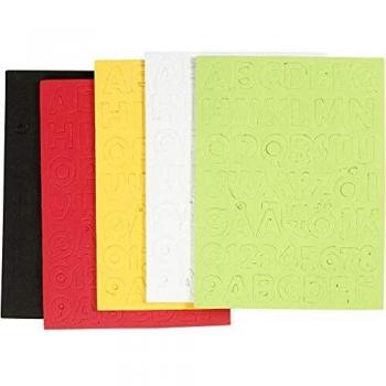 Feuilles de mousse EVA, dimensions 2-2,3 cm, épaisseur 2 mm, assortiment de couleurs, 1x5 feuilles/ 1 paquet