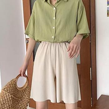 Shorts Femme Sport Running Bermudas Jambes Larges Lâches Glace-Soie Mince Été Solide Drapé Style Coréen Chic Simple Rétro À La Mode Adolescents M Beige