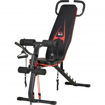 Banc Gym HomePro – hauteurs ajustables, coussin abdominal 7 niveaux, finition noire et rouge