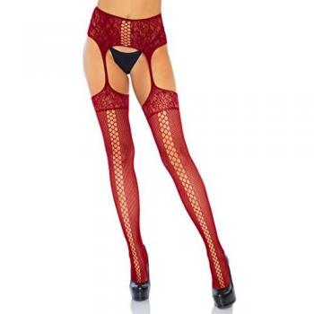 Leg Avenue - Bas Dentelle Porte Jarretelles - Rouge