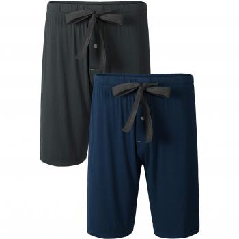 Bas de Pyjama Homme en Fibre de Bambou Shorts Salon Vêtements de Nuit avec Cordon de Serrage, Pantalon Court de Pyjama pour Hommes, 2 Pièce (XL, Bleu Marine+Gris foncé)