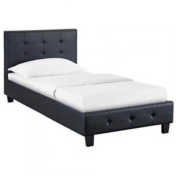 Lit simple REVE, 90 x 190 cm, avec sommier, capitonné, en synthétique noir