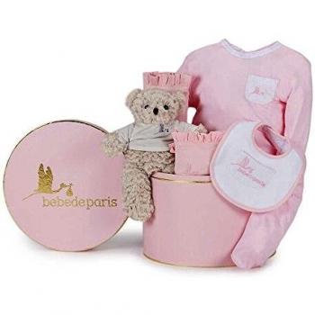 BebeDeParis | Cadeaux originaux pour les nouveau-nés | Panier de bébé classique essentiel | Boîte de modèle de cadeau de bébé d'| 3-6 mois (rose)