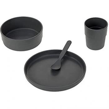 LÄSSIG Set de vaisselle, uni noir (assiette, bol, tasse, couverts)