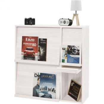Bibliothèque modulable Iris Ohyama, bois marron clair, quatre étagères ouvertes offrant une grande capacité de rangement. Son design combine lignes horizontales et verticales pour un espace polyvalent, idéal pour bureau ou salon.