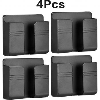 Boîte de rangement murale multifonction 4 pièces pour télécommande TV et support de charge pour téléphone portable