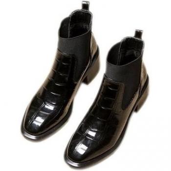 Bottes Chelsea pour femmes, cuir brillant, élastiques, talons moyens, bout carré