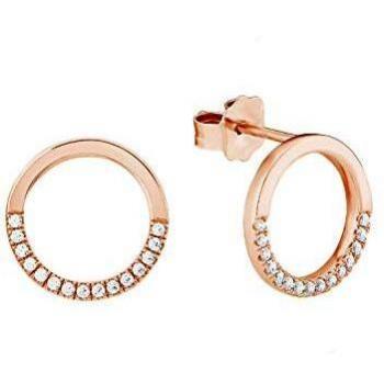 Boucles d’oreilles en acier inoxydable rose doré, finition clou et puce, agrémentées de cristaux Swarovski qui scintillent à chaque mouvement; légères, résistantes, idéales pour un style contemporain et raffiné.